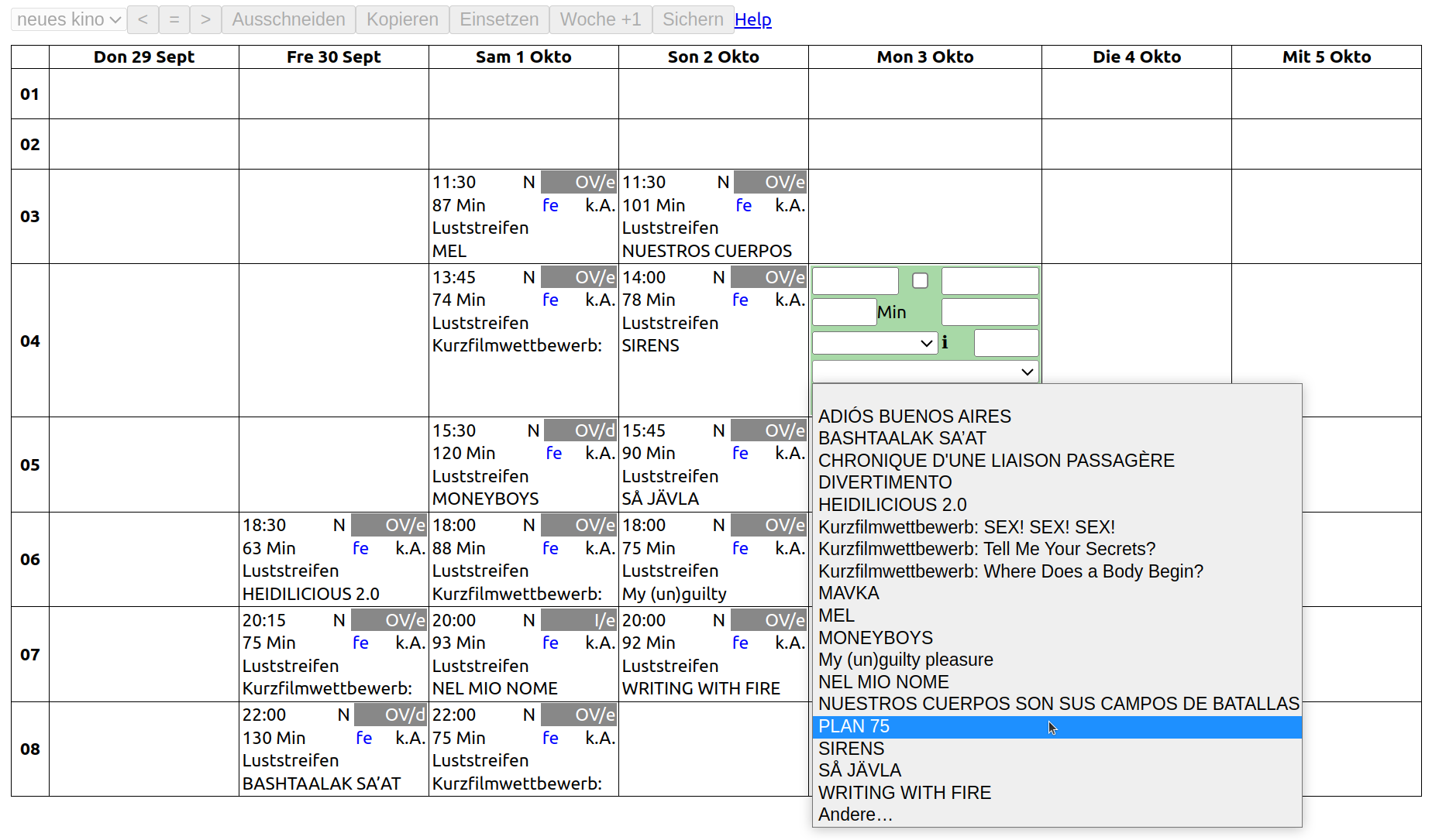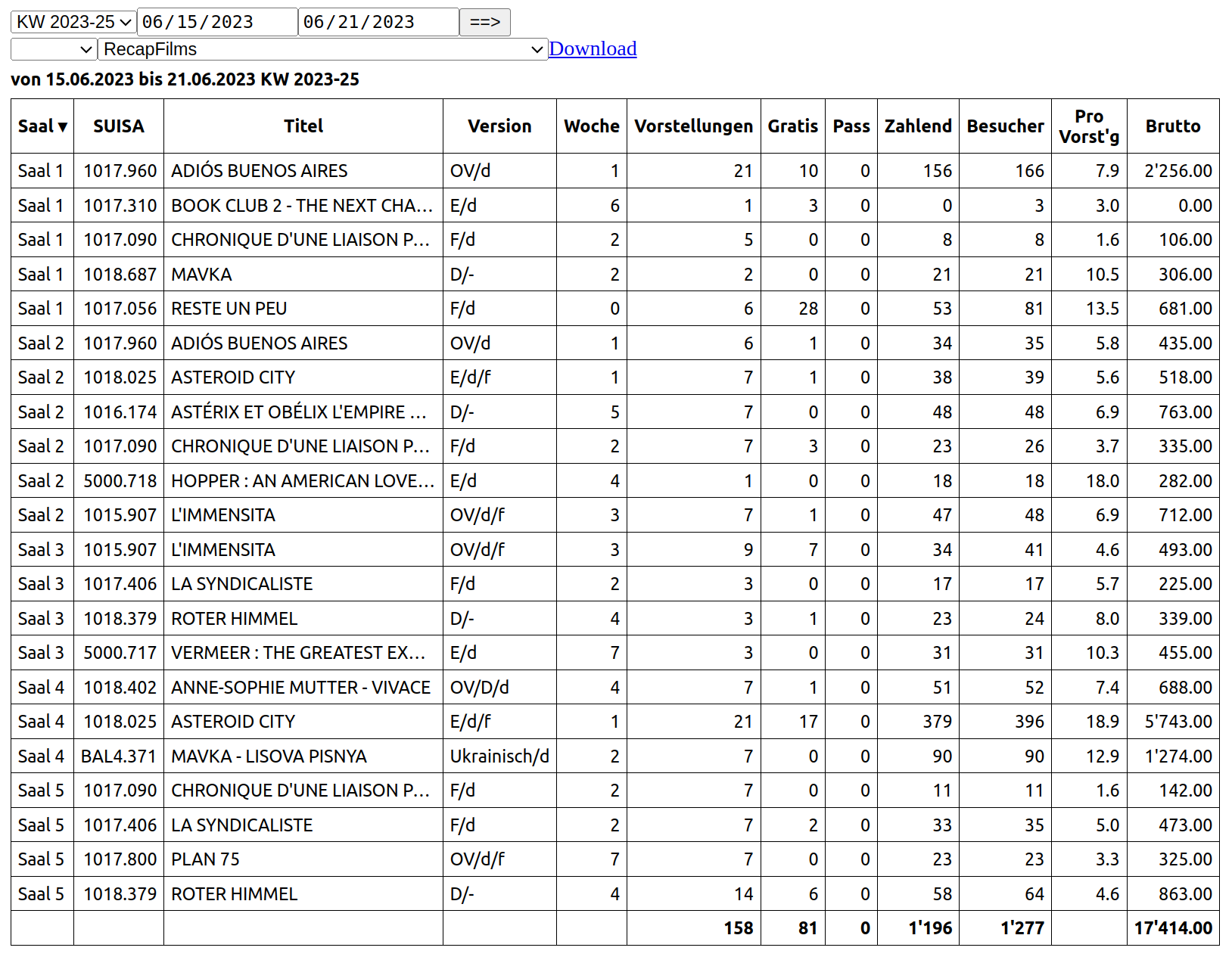 - Filmerfassung: Möglichkeit des Imports von Stammdaten, Synopsen, Plakaten, Trailern etc.